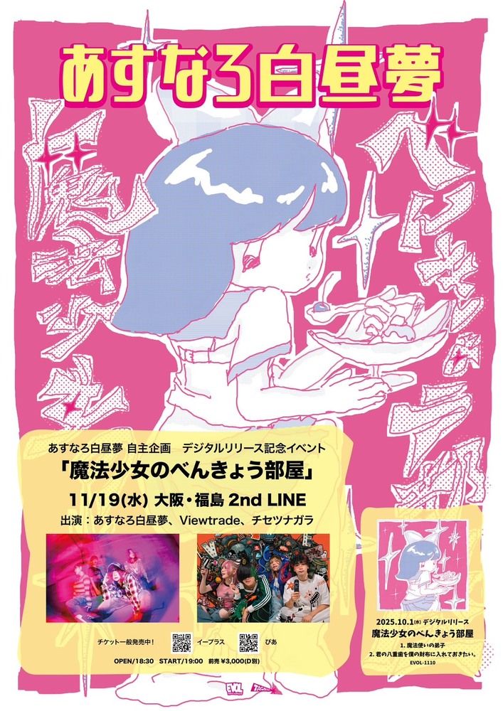 【主催】魔法少女のべんきょう部屋 SCHEDULE 2025/11/19(水) 福島2nd LINE [大阪] 地図を表示 OPEN 18:30 / START 19:00 前売り 3,000 w) Viewtrade / チセツナガラ チケット購入 URLをコピーする 報告する